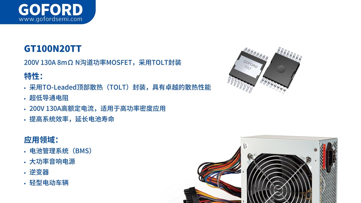 GOFORD为各应用领域市场:如消费类、工业类以及汽车应用领域,提供包括MOSFET, SIC MOSFET, GAN MOSFET, IGBT等高质量高性能的半导体功率器件。